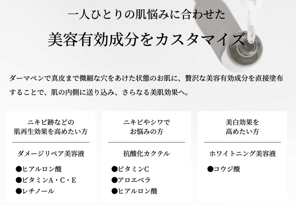 ダーマペン4:極細針で肌に微細な穴を形成し有効成分を浸透させる施術。
