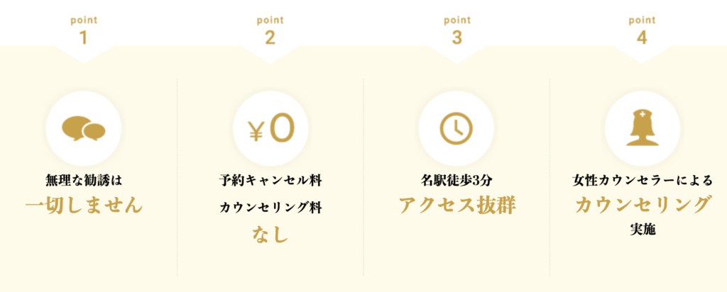 [box class=”box2″]城本クリニックは、ドクターと看護師のみで構成されているクリニックで無資格のカウンセラー、エステティシャンなどは在籍しないような制度を採用しています。[/box]