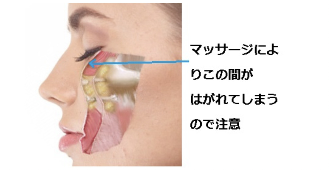 [box class=”box27″ title=”目の下の繊維が伸びてしまう”]目の下にある繊維組織は、コラーゲンでできています。そのため、目の下のマッサージはコラーゲン繊維を伸ばす行為であり逆効果です。たとえば、エステのフェイスマッサージが該当する行為のため、老化対策にならずに危険です。[/box]