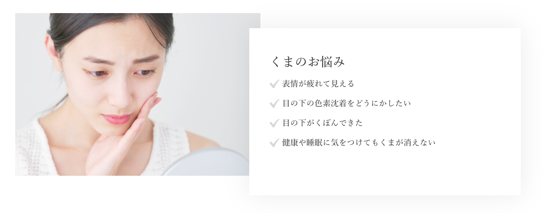 施術前に自分のクマの種類を把握して、クマに合った治療方法で施術をしてもらいましょう。