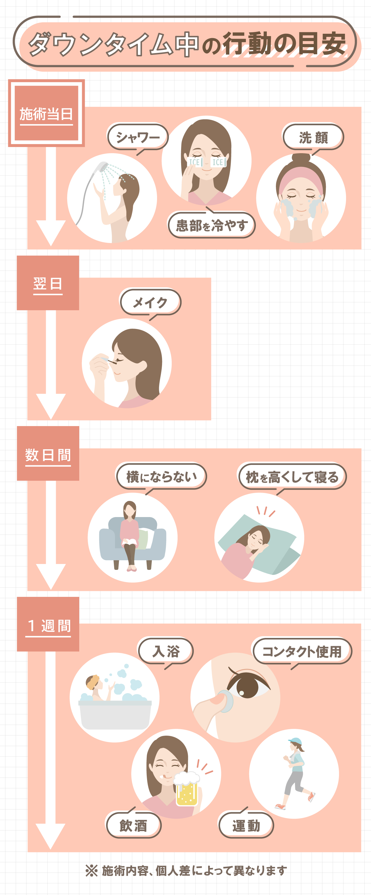 クマ取り施術をした後のダウンタイム中はどう過ごしたらよいのか、気になりますよね。