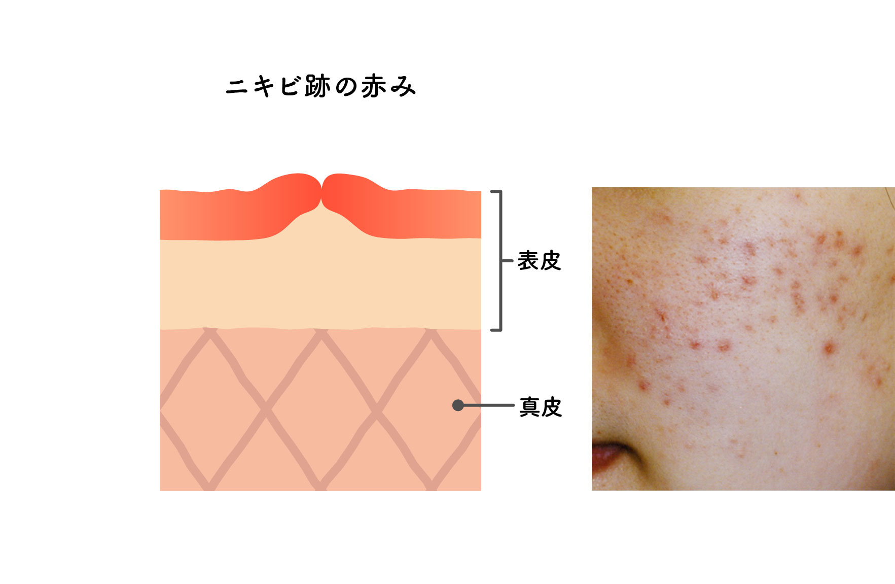 原因 ニキビの炎症が肌の深部まで広がり、傷を治す肌細胞が必要以上に作られる