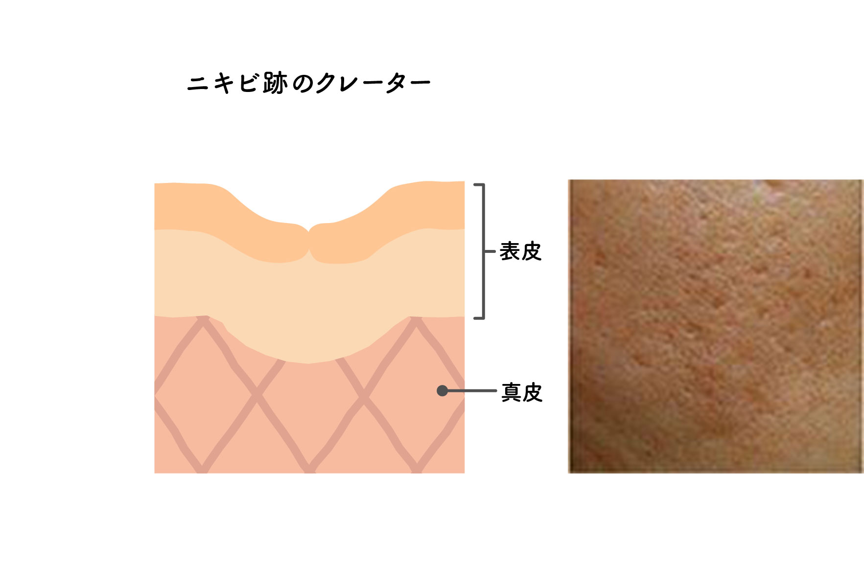 【クレーター(凹凸)】炎症が悪化し、真皮層が破壊されてしまった状態