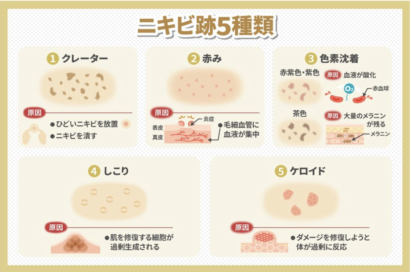 引用:ニキビ跡(痕)の種類と対処方法は?
