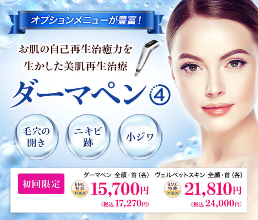 共立美容外科ではダーマペンやハイドラフェイシャルなどを行っており、メニューによっては初回限定価格も用意されています。