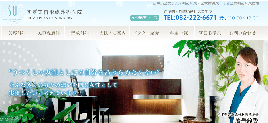 すず美容形成外科医院は、広島電鉄 八丁堀電停から徒歩1分の場所にあるクリニックです。