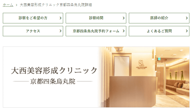 大西美容形成クリニック京都四条烏丸院の施術と料金