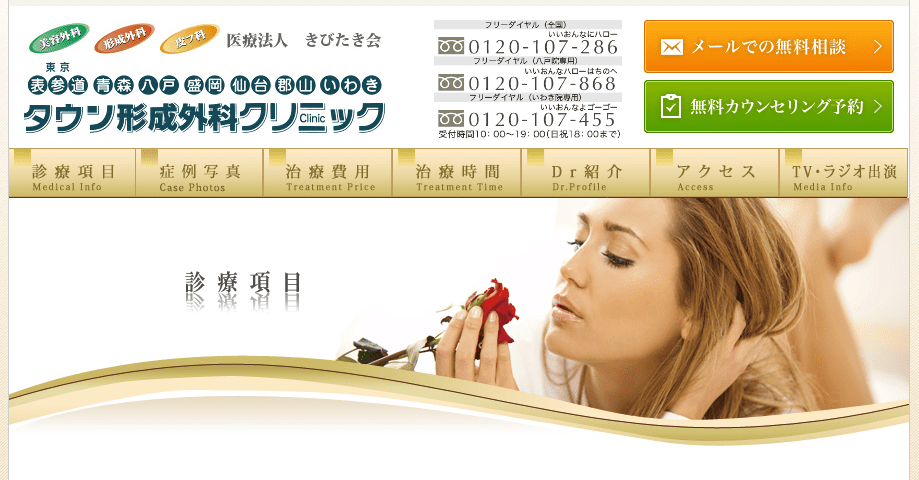 タウン形成外科クリニックの公式ホームページでは料金だけでなく施術時間の目安も掲載されています。
