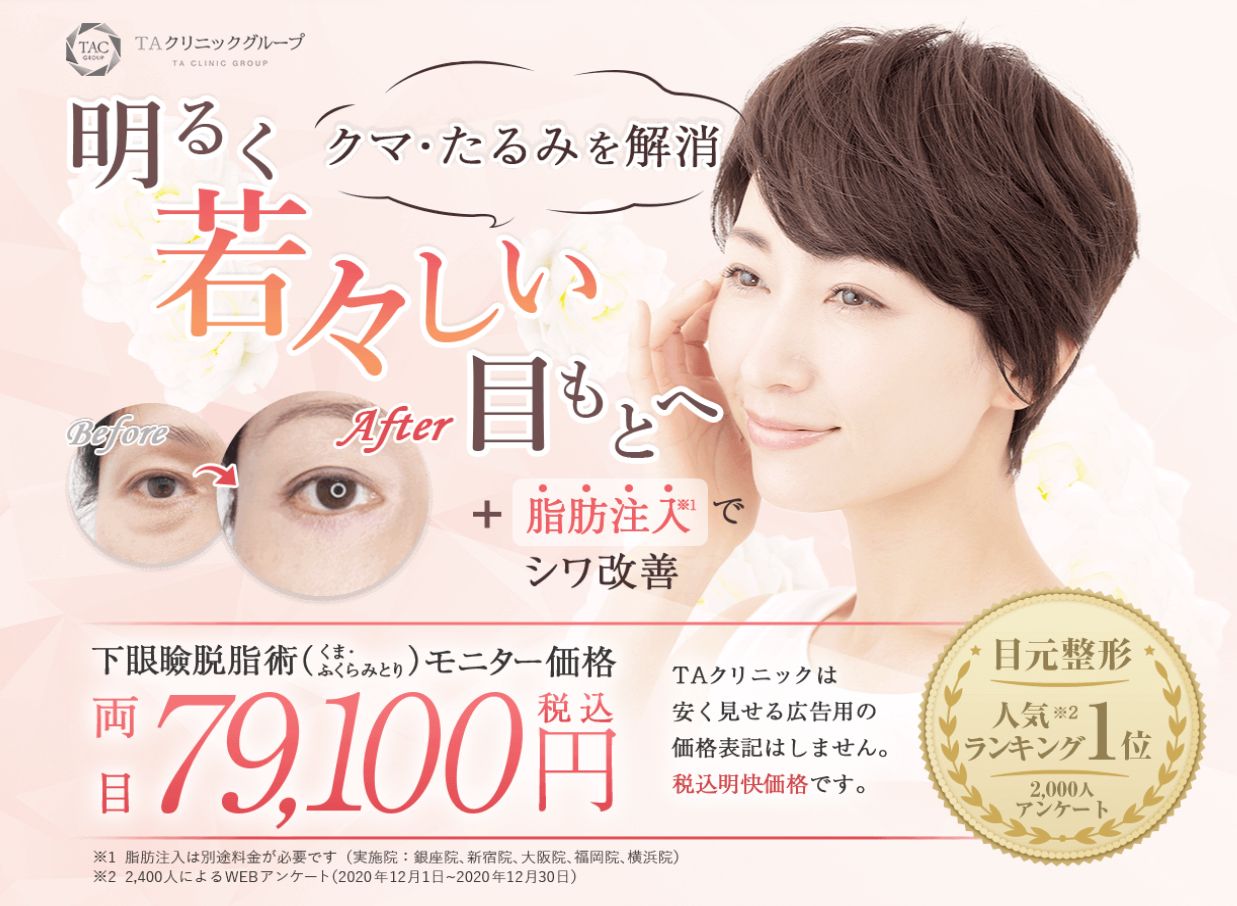 | 目の下の脂肪取り(経結膜下脱脂法) | 330,000円 |