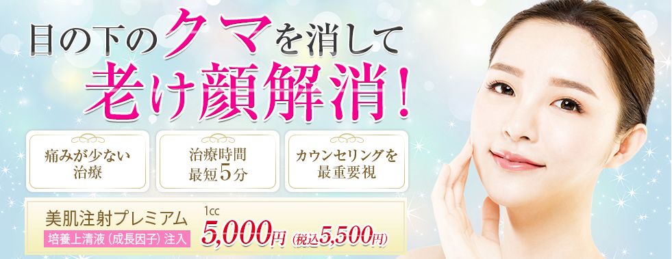 クマ取り施術のひとつである美肌注射プレミアムは、個人差はありますが所要時間5分程度で終わることが多いと言われます。