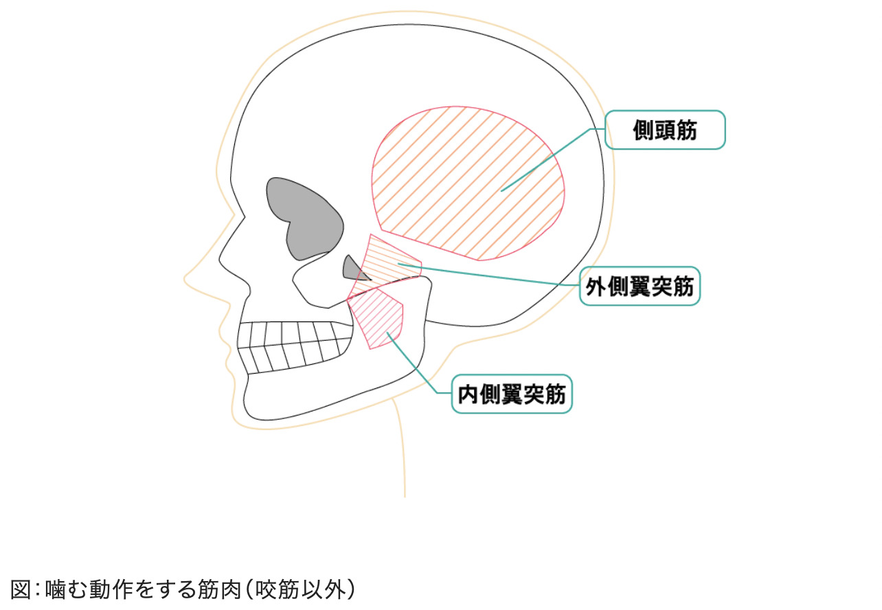 あごのかみ合わせ部分の咬筋(こうきん)にボトックスを注射することで、強い顎の筋肉を緩めることができ、歯ぎしりや食いしばりを緩和することができます。