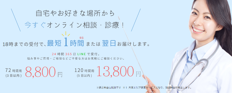 医師との診療後、薬は即日発送されます。また、東京23区に限り最短60分で薬を届けるバイク便も利用可能。バイク便は、送料550円と別途7,900円必要です。バイク便の配達受付時間は、10時~19時までとなっています。