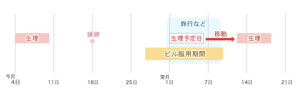 ピルに入っているホルモンを脳が「妊娠した」と認識するため排卵が起きず生理の日をずらせるのです。