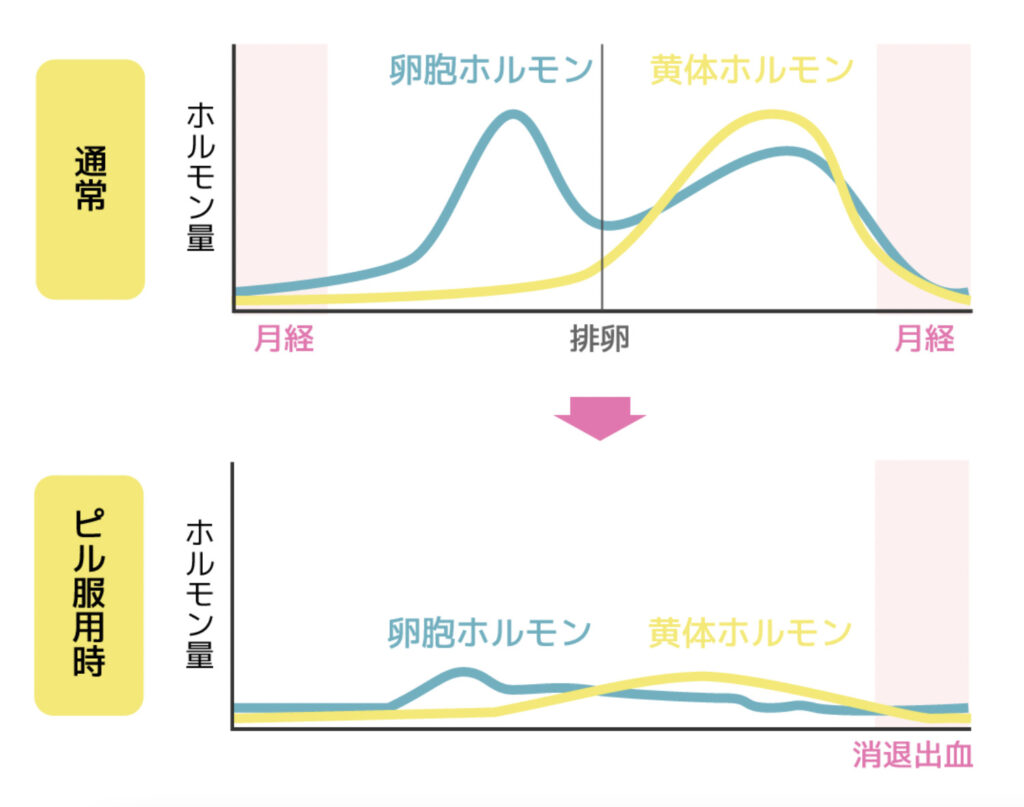 ピルは、卵巣で作られる女性ホルモンのエストロゲン・プロゲステロンが配合されています。ピルを服用することでホルモンバランスを調整します。