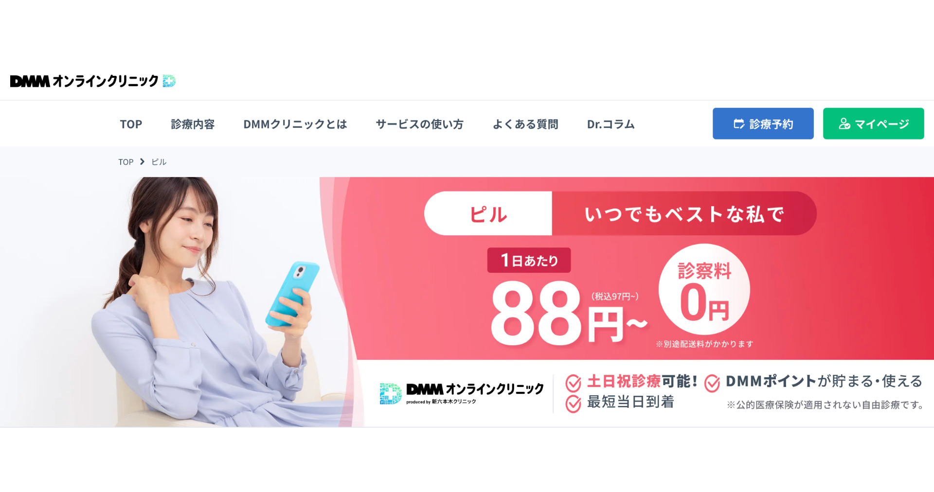 通院・待ち時間ゼロで手軽にピルが手に入る
