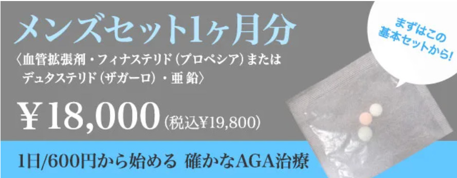 銀座よしえクリニックでは血管拡張剤・フィナステリド(プロペシア)またはデュタステリド(ザガーロ)・亜鉛を組み合わせた、独自のメンズセットを処方しています。