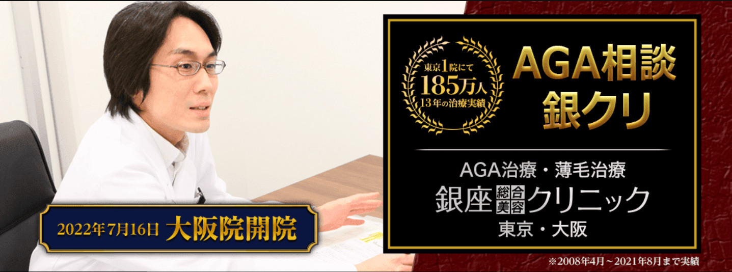 銀座総合美容クリニックのAGA治療は、2022年の5月20日より治療費が改定され「カウンセリング+初診料+進行予防・発毛を促す内服薬」が初月1,000円で提供されるようなりました。