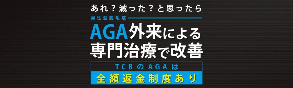 TCBは美容施術でも手掛けるクリニックですが、AGA専門外来も備えています。年中無休のため、平日お仕事で忙しい方でも通いやすいクリニックです。さらに、6ヶ月間治療を行なって、全く効果が感じられなかった場合は治療費を全額返金する保証制度もあります。