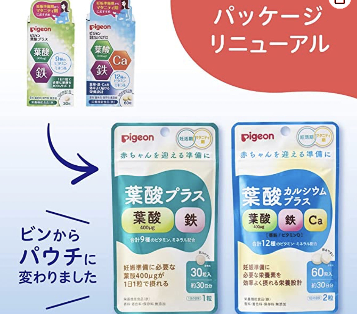 ピジョン葉酸プラスは、「たまひよ赤ちゃんグッズ大賞 妊娠中によかったランキング2021」で葉酸サプリ部門第1位を獲得。また瓶からパウチにリニューアルされ、持ち運びにも便利になりました。1日1粒でOKなので、毎日でも継続できる葉酸サプリでしょう。