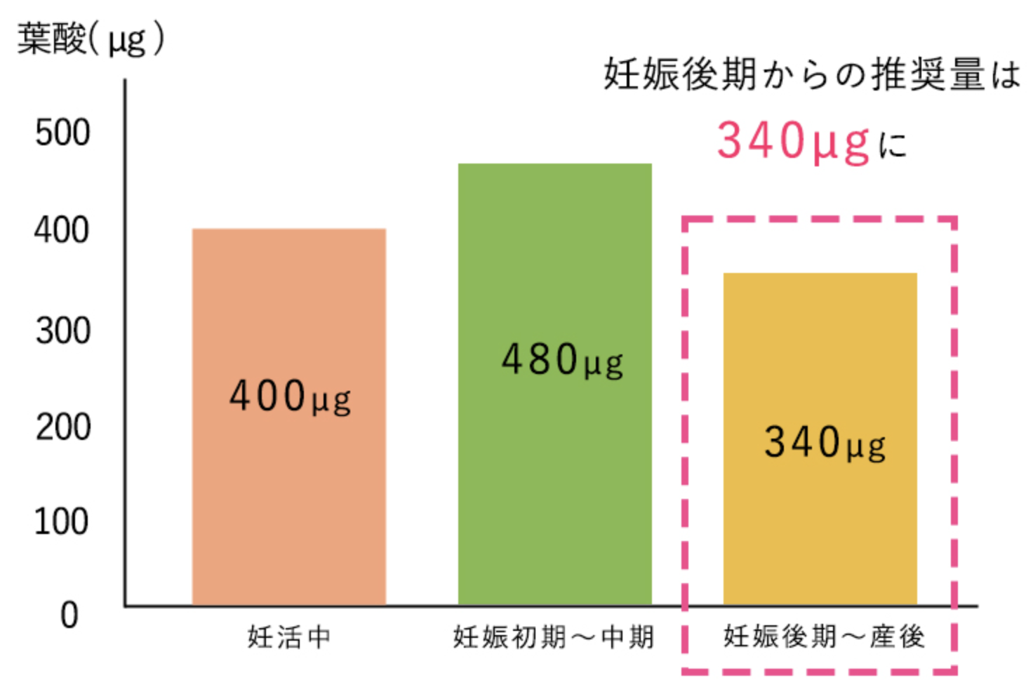 ※1普段の食事量に合わせて必要な量(普段の食事で取れる葉酸の量は240μg)