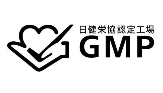 GMP認定マークとは、原材料及び資材入荷から製品・出荷まで全て工程がGMP適合と認定された工場で 製造されていること。