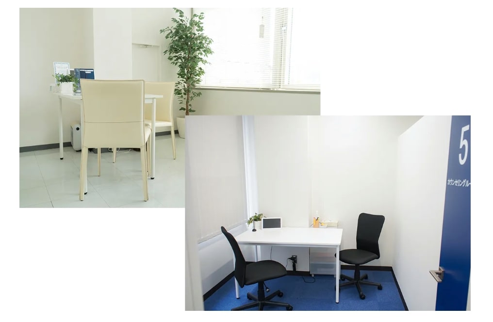 AGAスキンクリニックはプライバシーに配慮しており、全院予約制で一人ひとり個室でのカウンセリングです。他の人と会うことがなく、ビルには他業種のお店が入っているため気軽に来院できます。