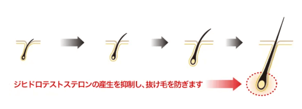 発毛効果のある成分として世界中で認められているフィナステリドとミノキシジル、アミノ酸などの栄養成分で構成されています。発毛に必要な有効成分を身体に吸収しやすい配合で、安全性にも配慮しています。抜け毛の原因とされているジヒドロテストステロン(DHT)の産生を抑制するため、AGAの改善が期待できます。