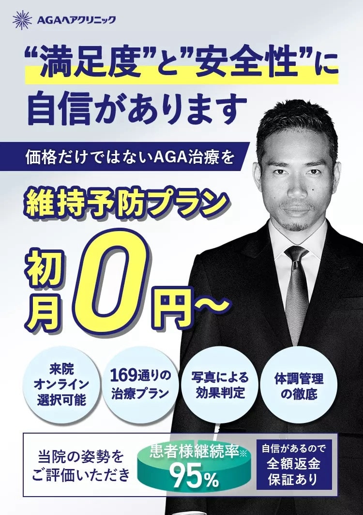初月お得に受けられるトライアル価格を設けており、フィナステリドの内服薬治療なら初月2,980円(税込)からAGA治療が試せるのが魅力です。