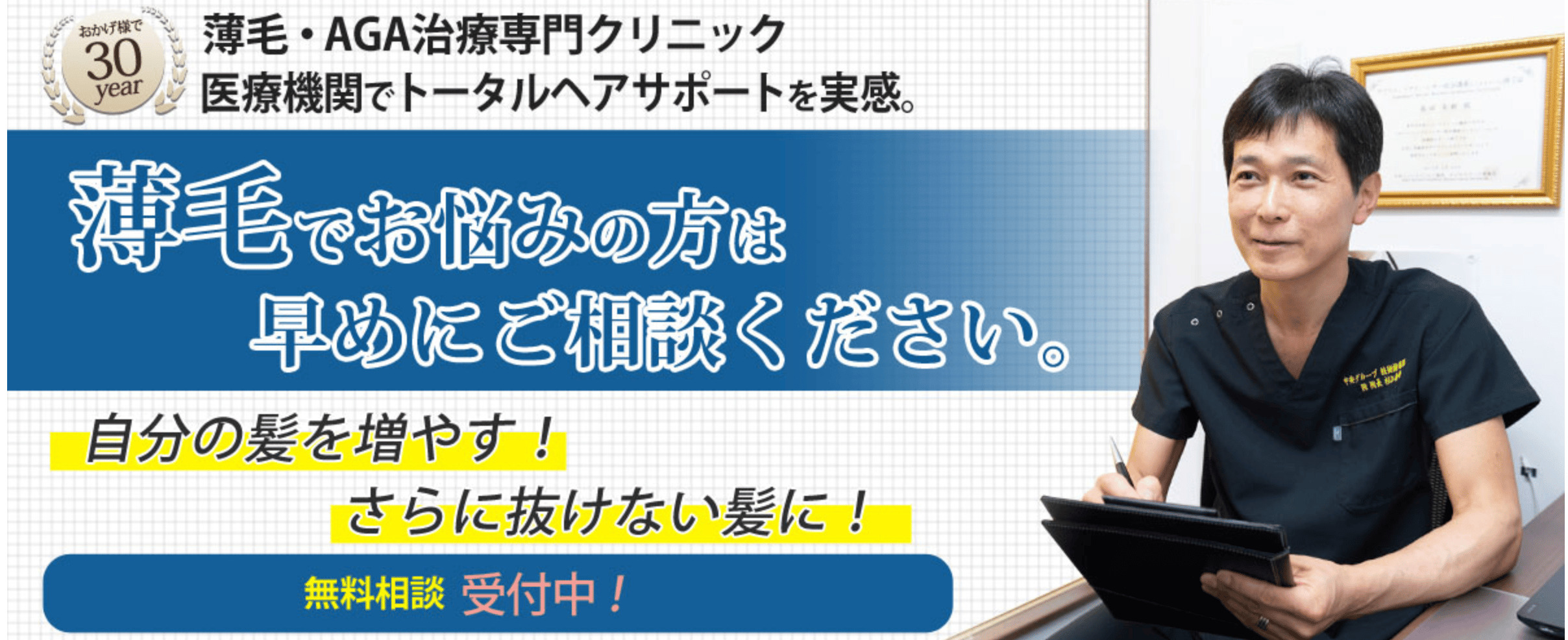 AGA治療が初めてという方から、他のクリニックで既に治療している方にまでおすすめできるクリニックです。