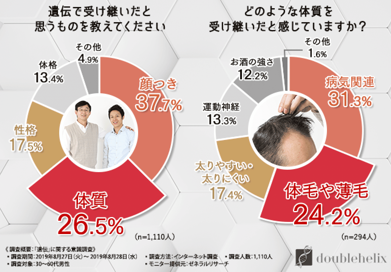 AGAになる原因と遺伝は大きく関わっています。5αリダクターゼの活性度は遺伝と深くつながっており、ジヒドロテストステロンに変換されやすい人が出てくるのです。活性度の高さは遺伝子情報によって違いますが、親から子へ遺伝しやすい特徴があります。