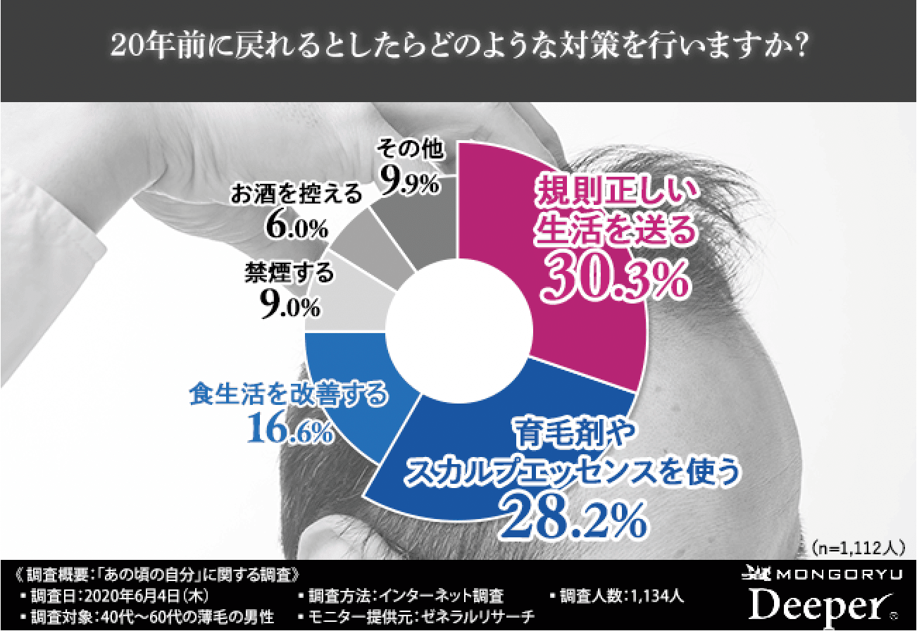 また、忙しい日々を送っていると、つい偏った食事になってしまいがちですが、脂の多い食生活を続けていると、頭皮環境が悪化し薄毛の原因になるので注意しましょう。