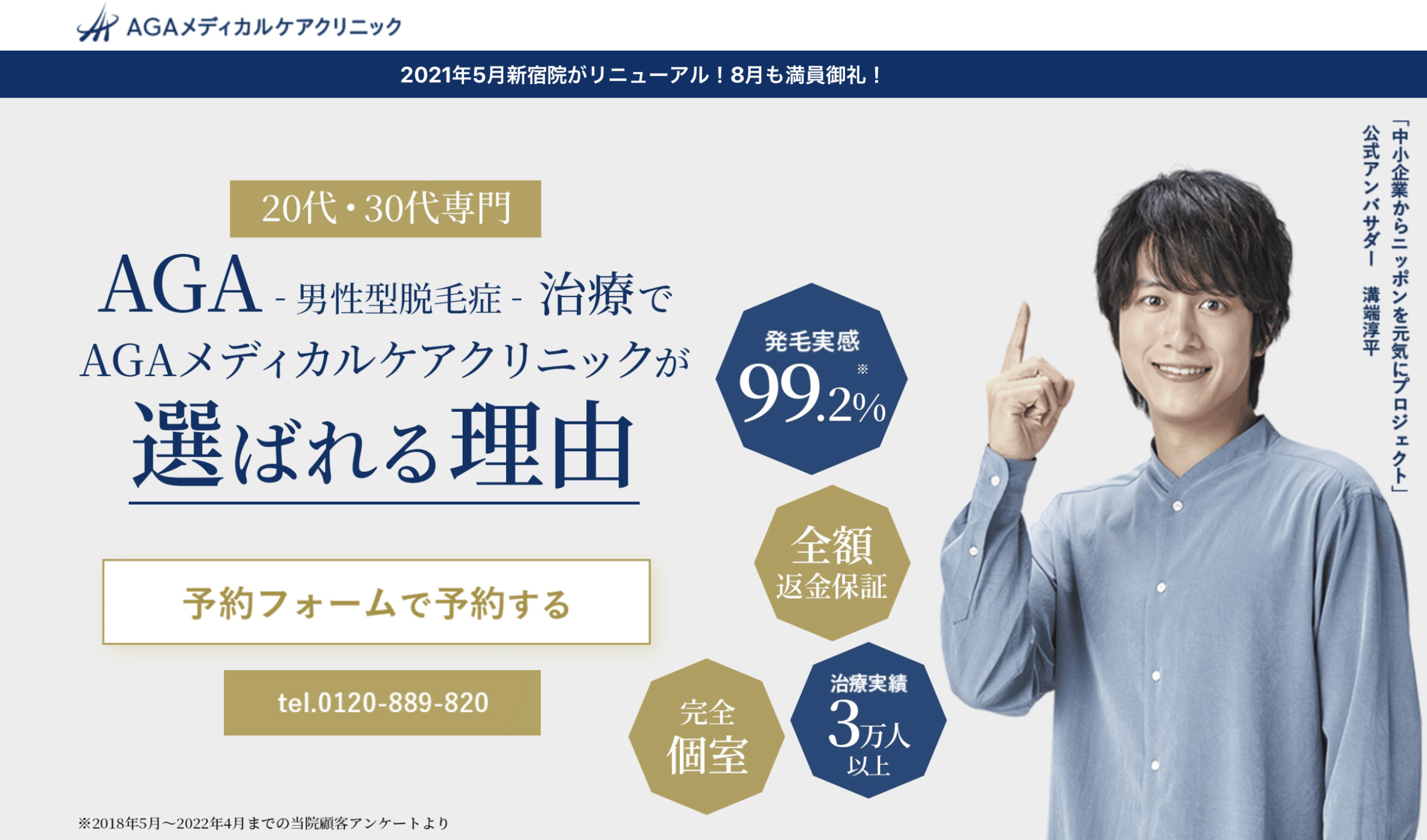 AGAメディカルケアクリニックは完全予約制と完全個室になっています。クリニックに通うのが面倒な人でもオンライン診療やLINEでの相談も受け付けています。