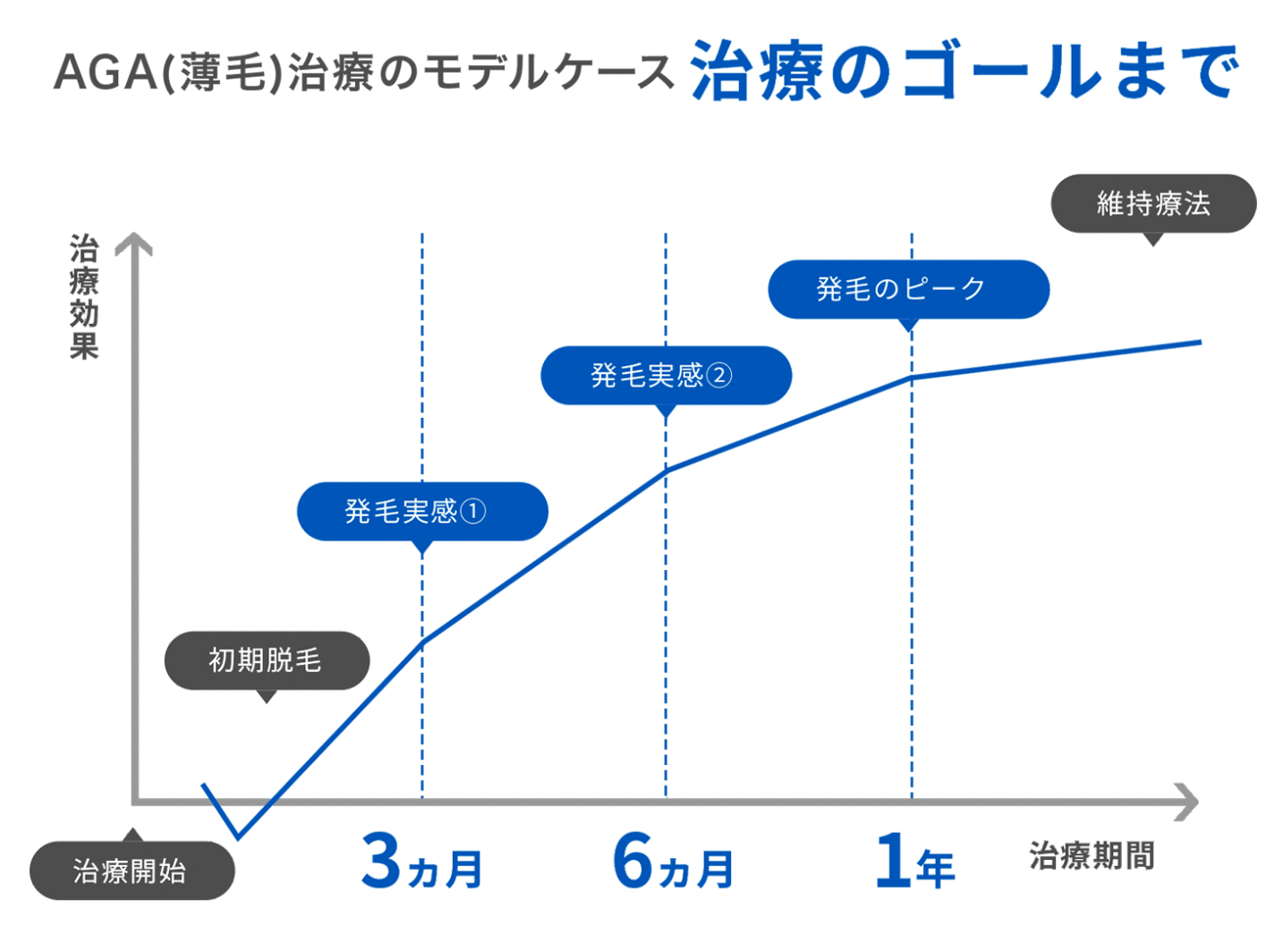 AGA治療は、治療を始めてすぐに効果が出るというものではありません。効果が感じられるまでには数ヶ月〜半年ほどかかります。