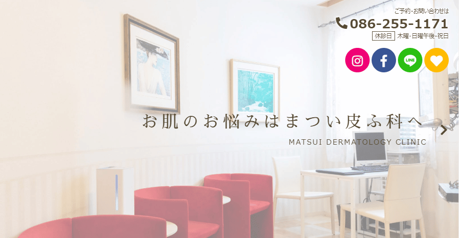 まつい皮ふ科の院長は笑い療法士であり、健生おかやまの健康生きがいづくりアドバイザーも務めています。人には誰でも自己治癒力を高め、病気を予防する力が備わっているのです。そんな力を引き出してくれるのもポイントです。