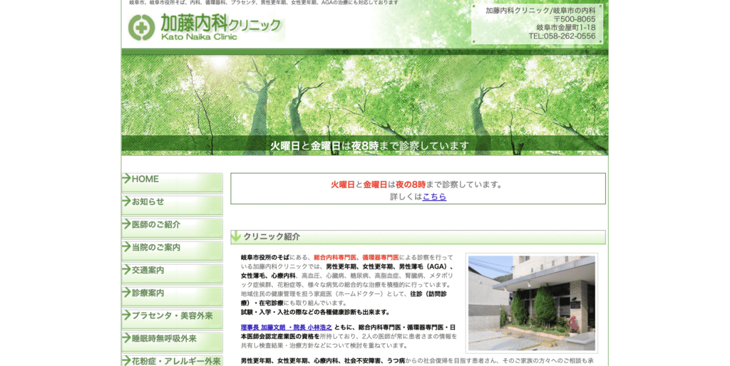 加藤内科クリニックは、火曜日、金曜日は夜20時まで営業しているクリニックです。仕事終わりからでもAGA治療に通うことができるので、忙しい方でも通いやすいクリニックとなっています。