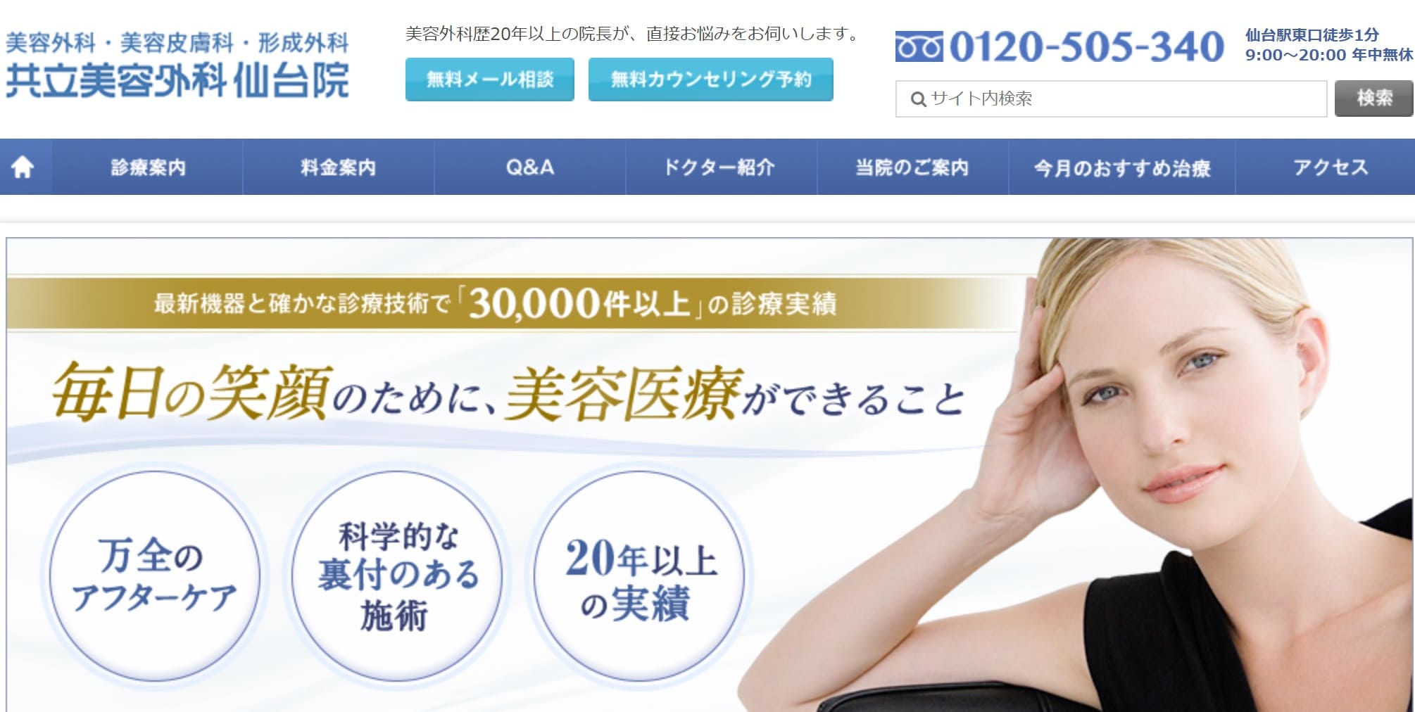 共立美容外科仙台院は、患者さんに合うような方法を提案することを心がけているクリニックです。しっかりと観察とカウンセリングを行い、患者さん一人ひとりにあった方法を一緒に探すことに重点をおいています。