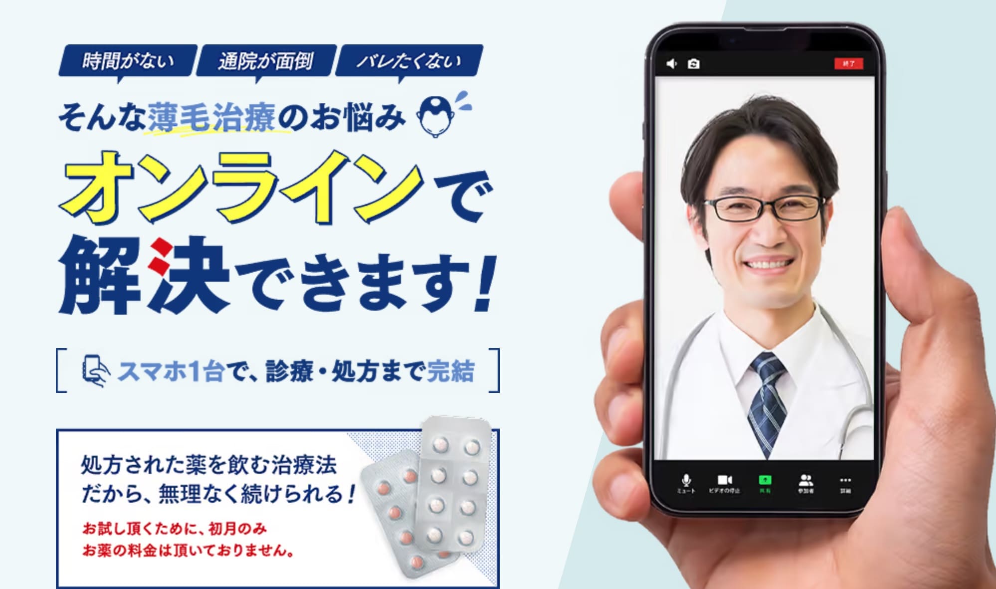 初診からオンラインOK | 無料相談OK | 医師の無料診察 |