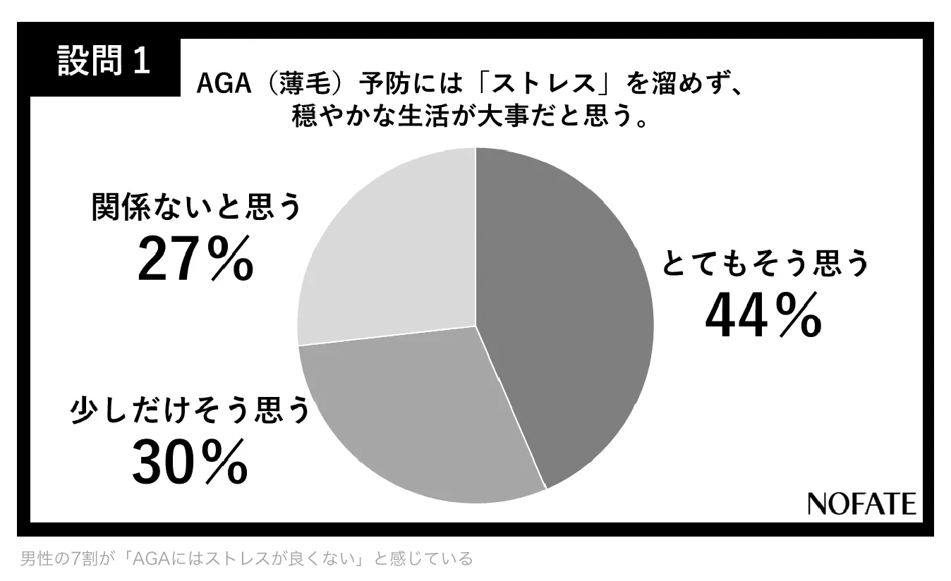 趣味や自分の時間を充実させたり、適度な運動をすることで上手にストレスを発散することはできるはずです。ストレスは、薄毛だけでなく精神面や肉体面にも良くない影響を与えます。