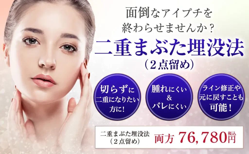 | 二重まぶた埋没法(3点留め) | 88,500円(税込) |